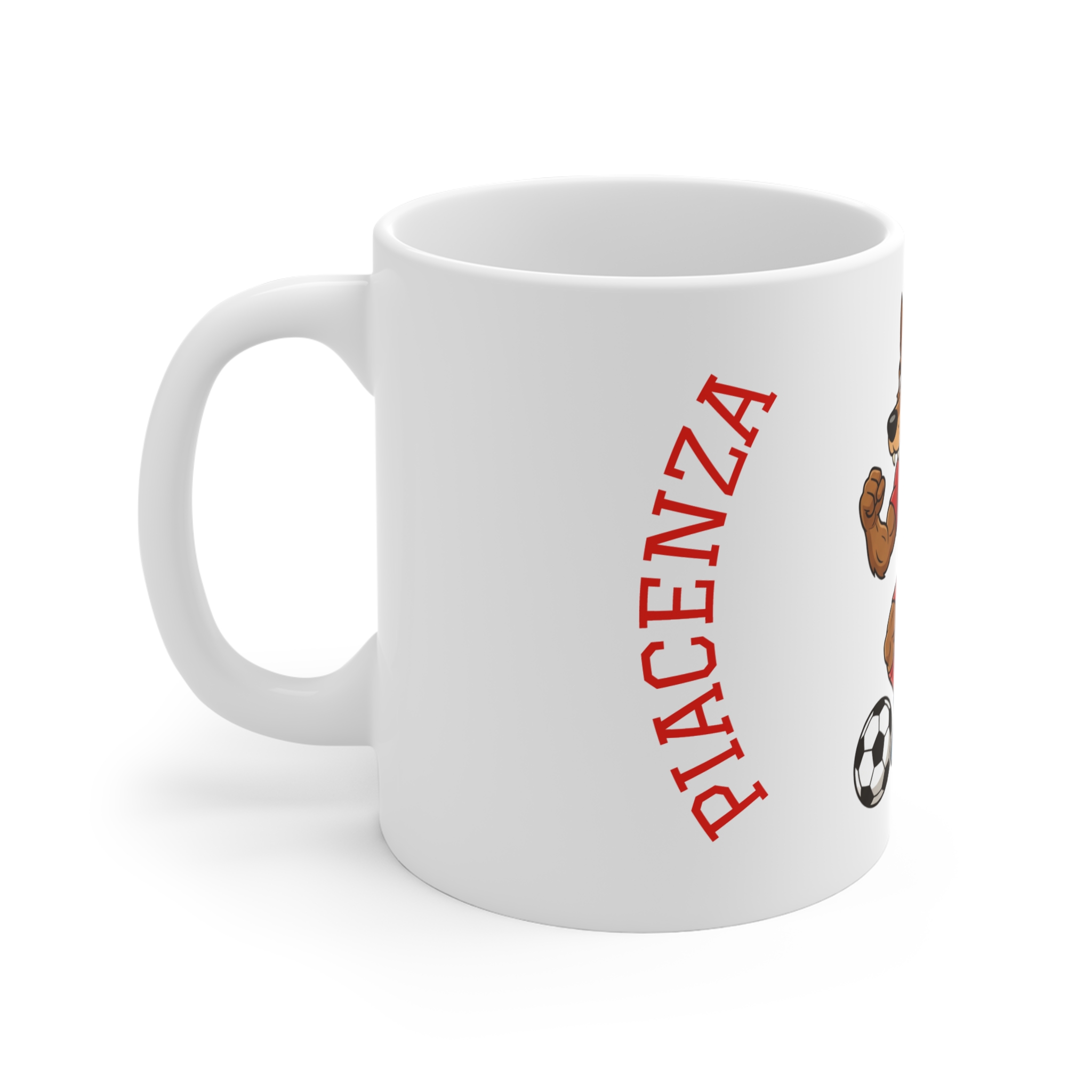 Mit dieser weißen Keramiktasse wird jeder Schluck zu einem Stück Piacenza-Spaß! Das liebenswerte Maskottchen bringt die Spannung des Spiels direkt zum Frühstück.