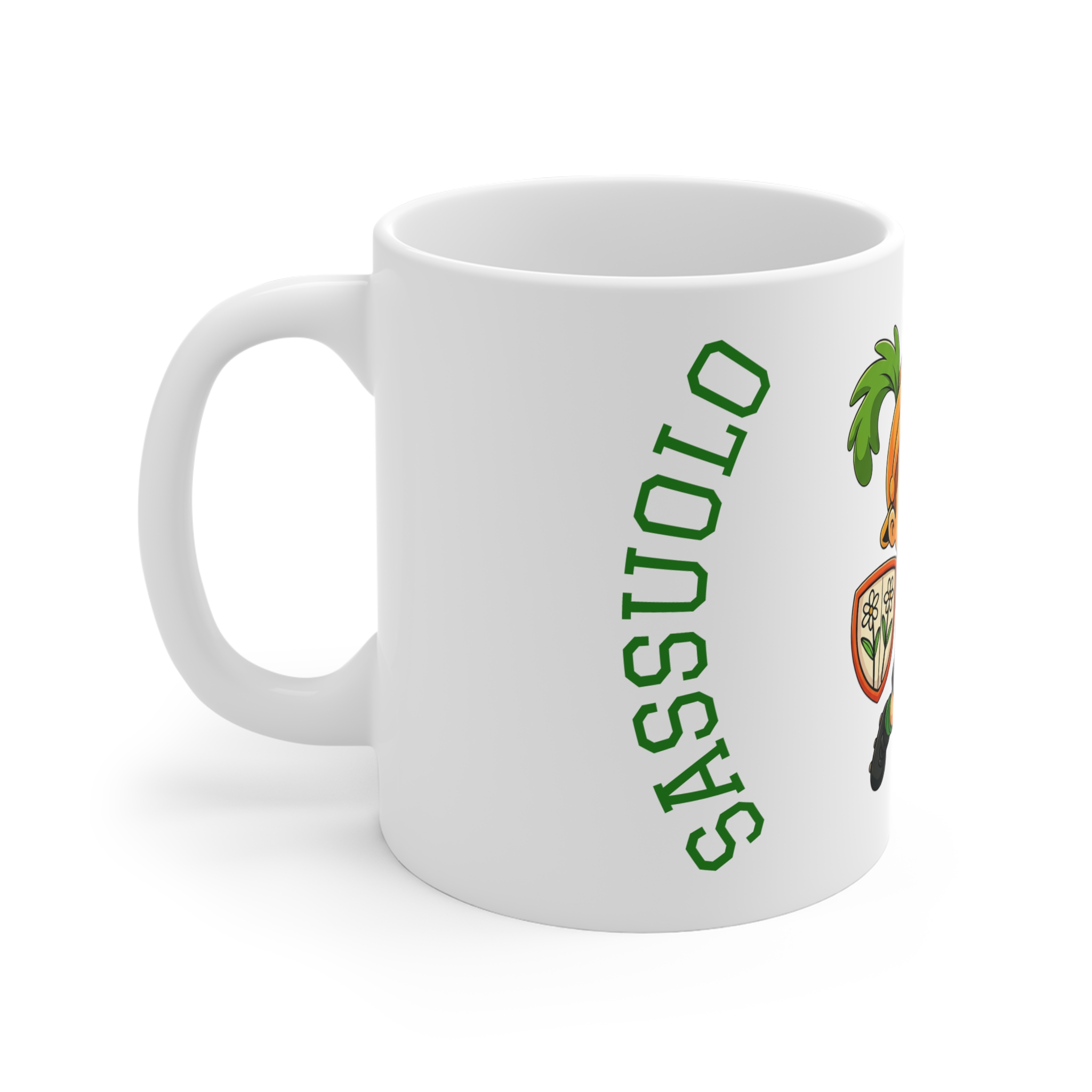 Diese weiße Keramiktasse verwandelt jeden Schluck in eine Explosion von Sassuolo-Spaß! Das liebenswerte Maskottchen bringt die Spannung des Spiels direkt zum Frühstück.