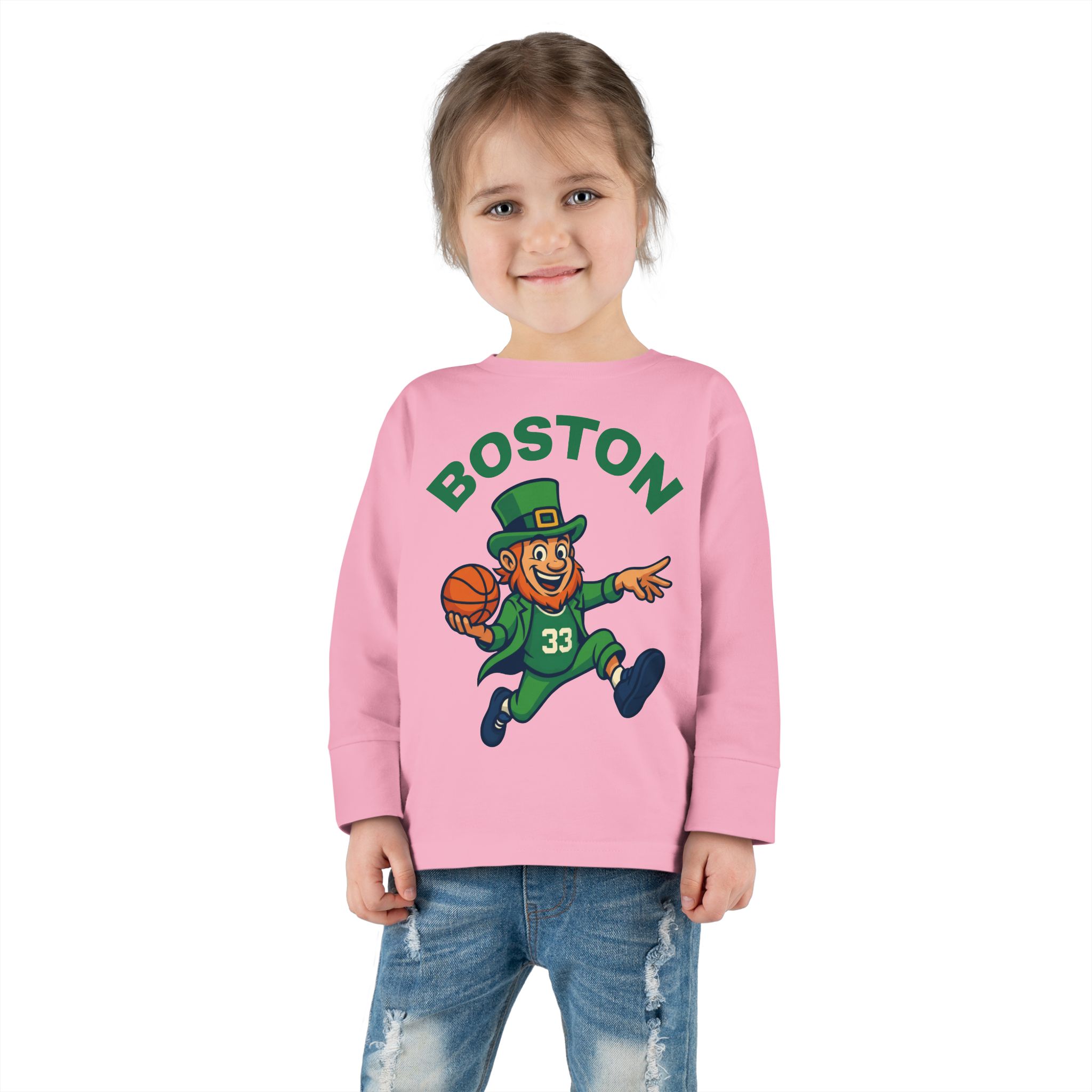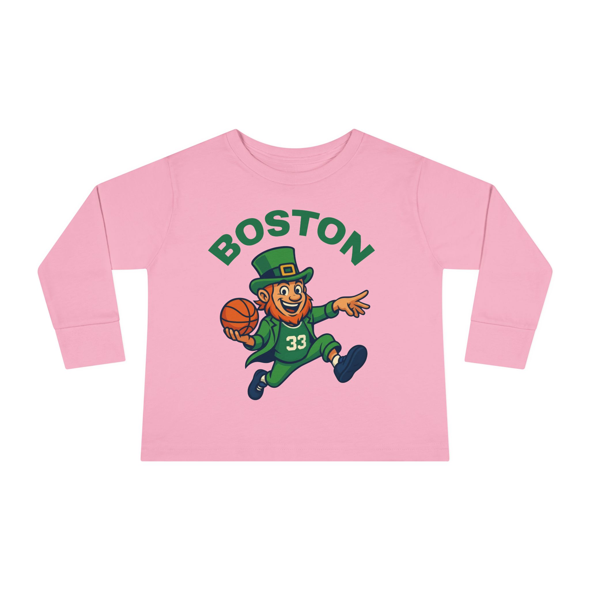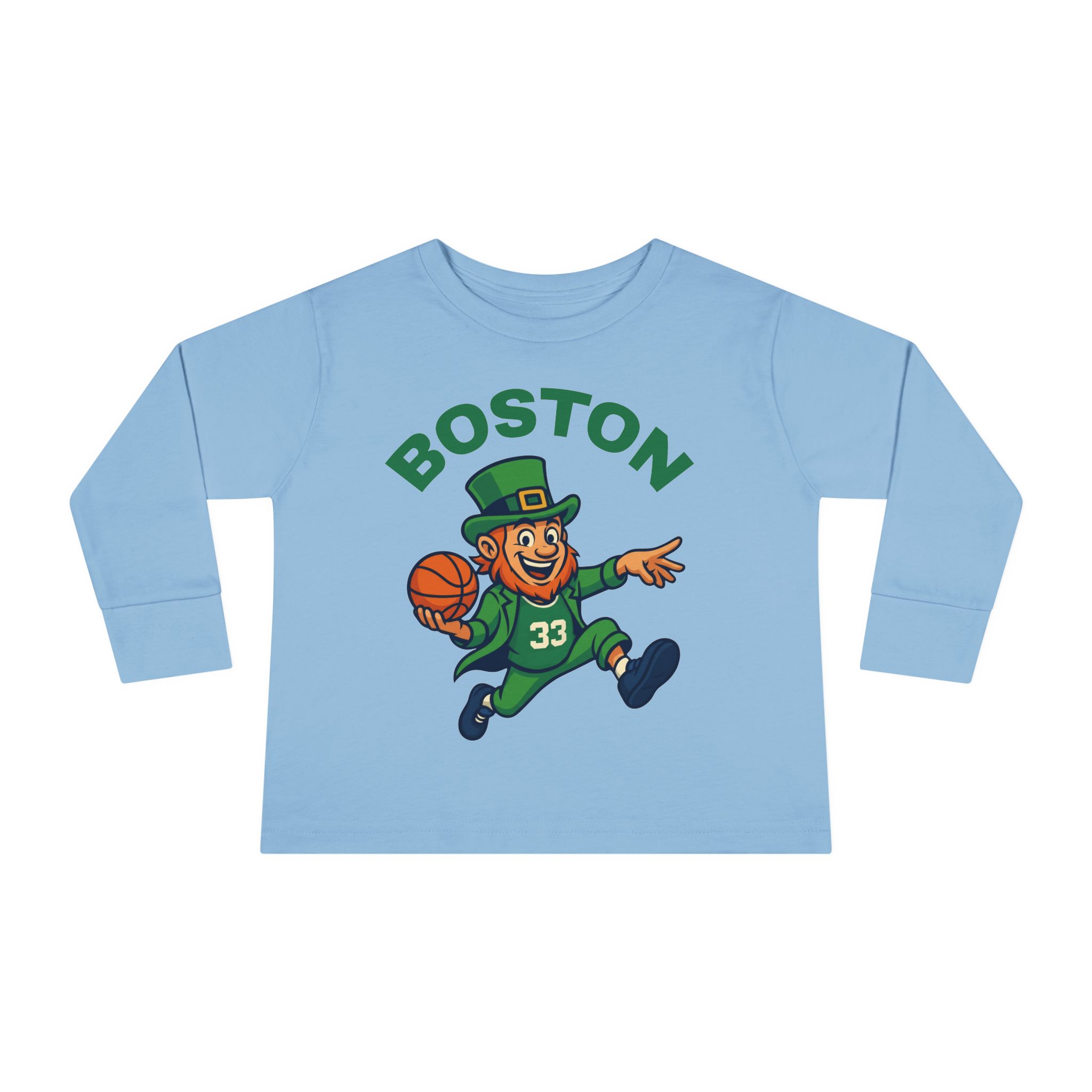 Let your little Celtics fan show off their team spirit with this stylish Toddler Long Sleeve Tee. Inspired by the iconic Boston Celtics mascot, the design brings a playful basketball vibe to your child’s wardrobe. Made from soft, lightweight fabric, it keeps kids comfortable whether they’re shooting hoops at the park, cheering from the couch, or running around at playdates. With its unisex fit and vibrant look, this tee is perfect for everyday wear, game days, or family gatherings. A must-have for young fans growing up in green!