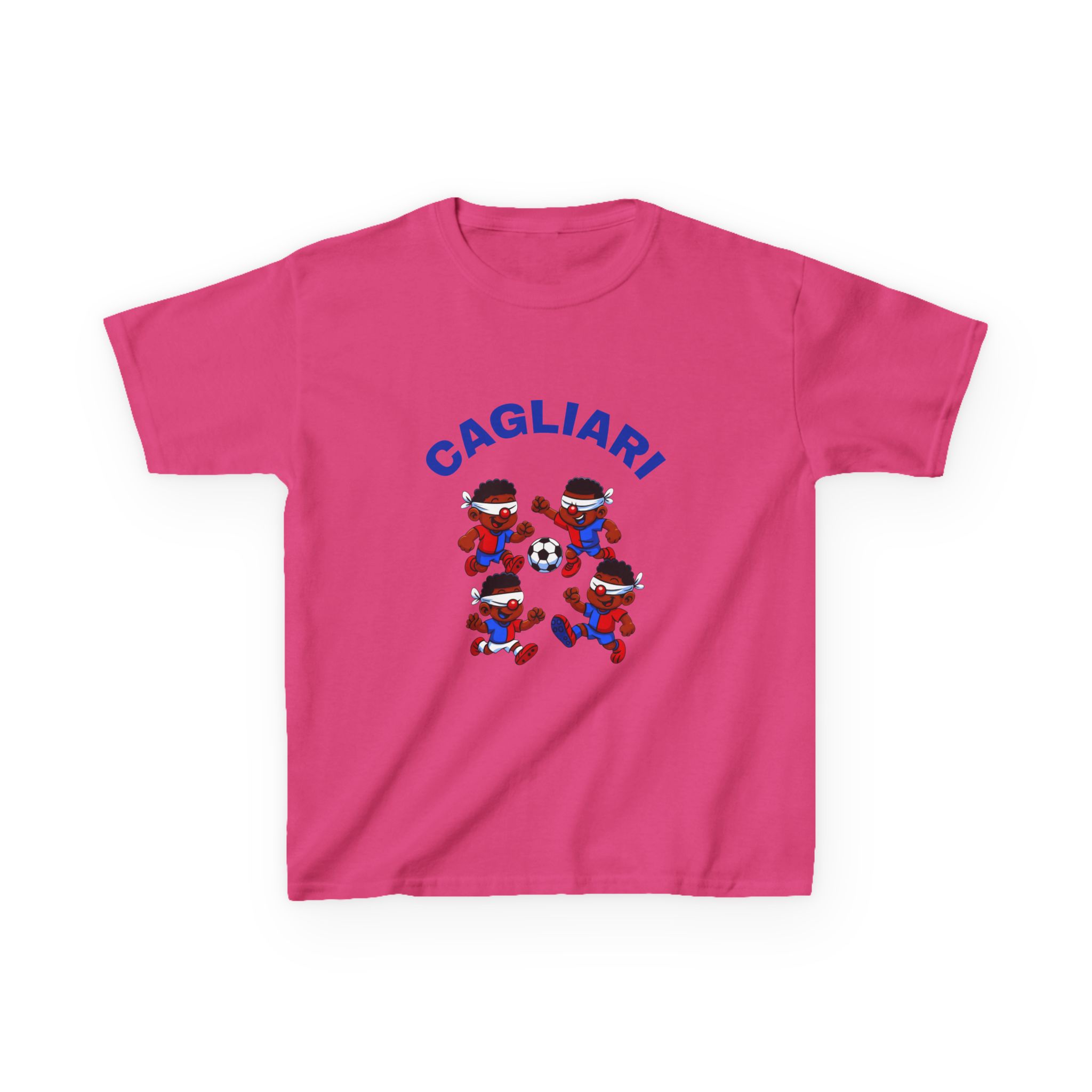 This t-shirt brings the energy of Cagliari’s beloved mascots to life — playful, bold, and full of team pride. Designed for young fans who love the game, it combines everyday comfort with a vibrant design that captures the joy of football. Perfect for school, playtime, or cheering from the stands, it’s made to move with your little one’s active lifestyle. A fun, high-quality gift for mini supporters and future champions — ethically crafted with soft, durable cotton for comfort that lasts.