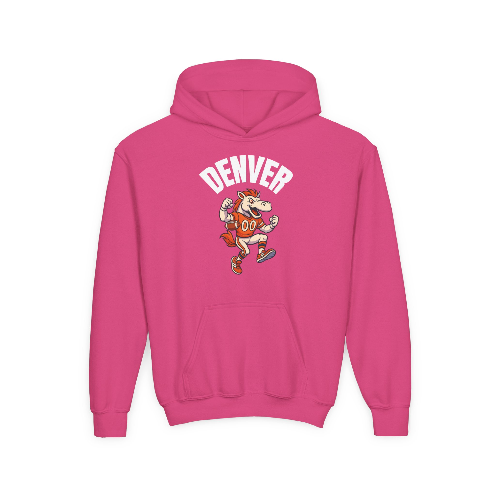 This cozy kids’ hoodie is inspired by Denver’s iconic mascot energy — bold colors, playful details, and that unstoppable Mile High attitude.