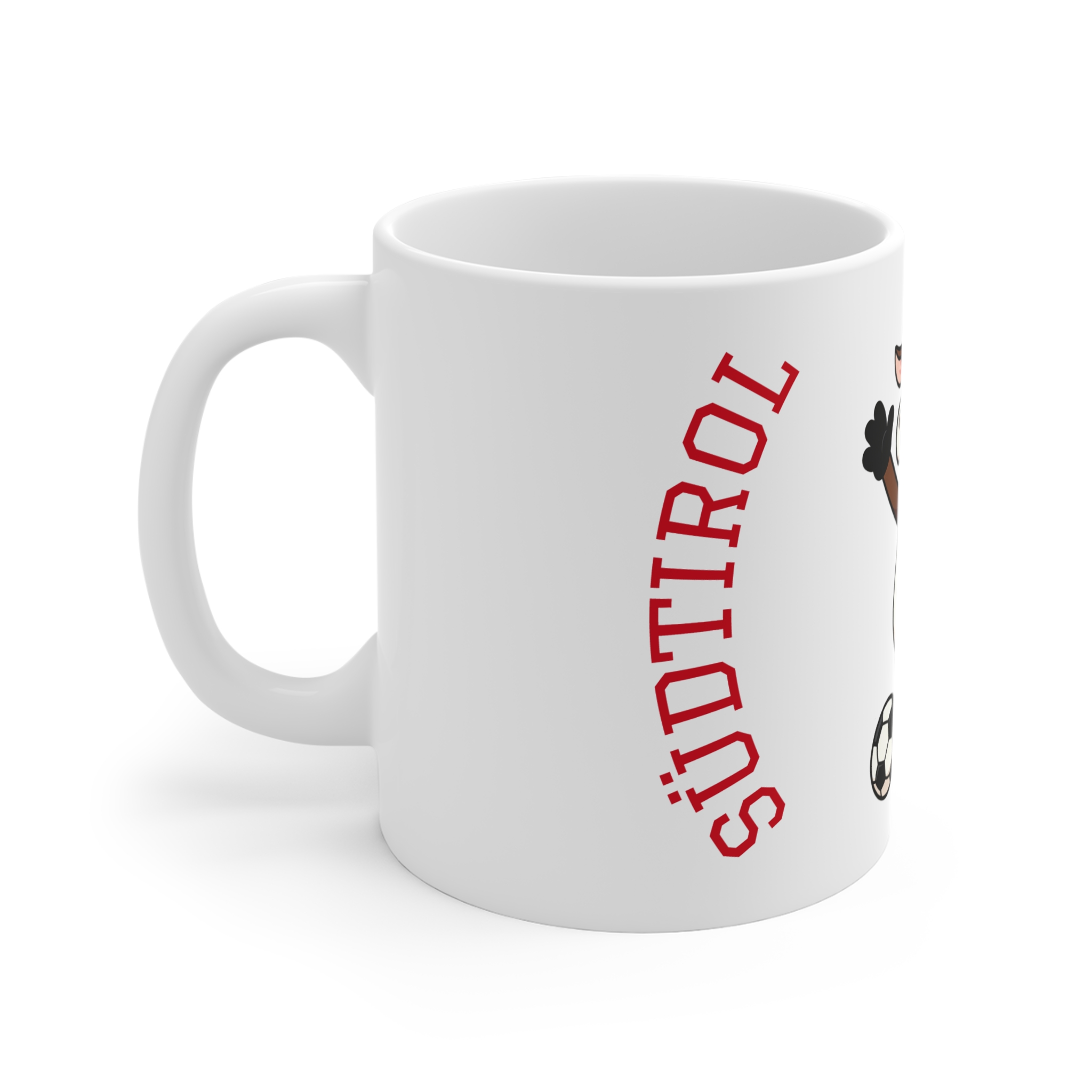 This white ceramic mug turns every sip into a burst of Südtirol fun! The adorable mascot brings the excitement of the game right to breakfast time.