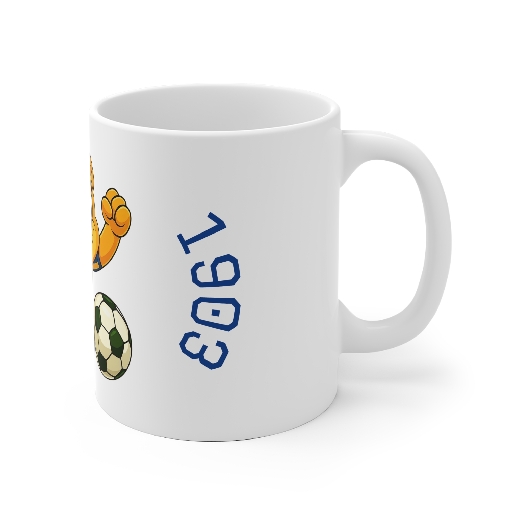 Esta taza de cerámica blanca convierte cada sorbo en una explosión de diversión de Verona. La adorable mascota traslada la emoción del partido a la hora del desayuno.