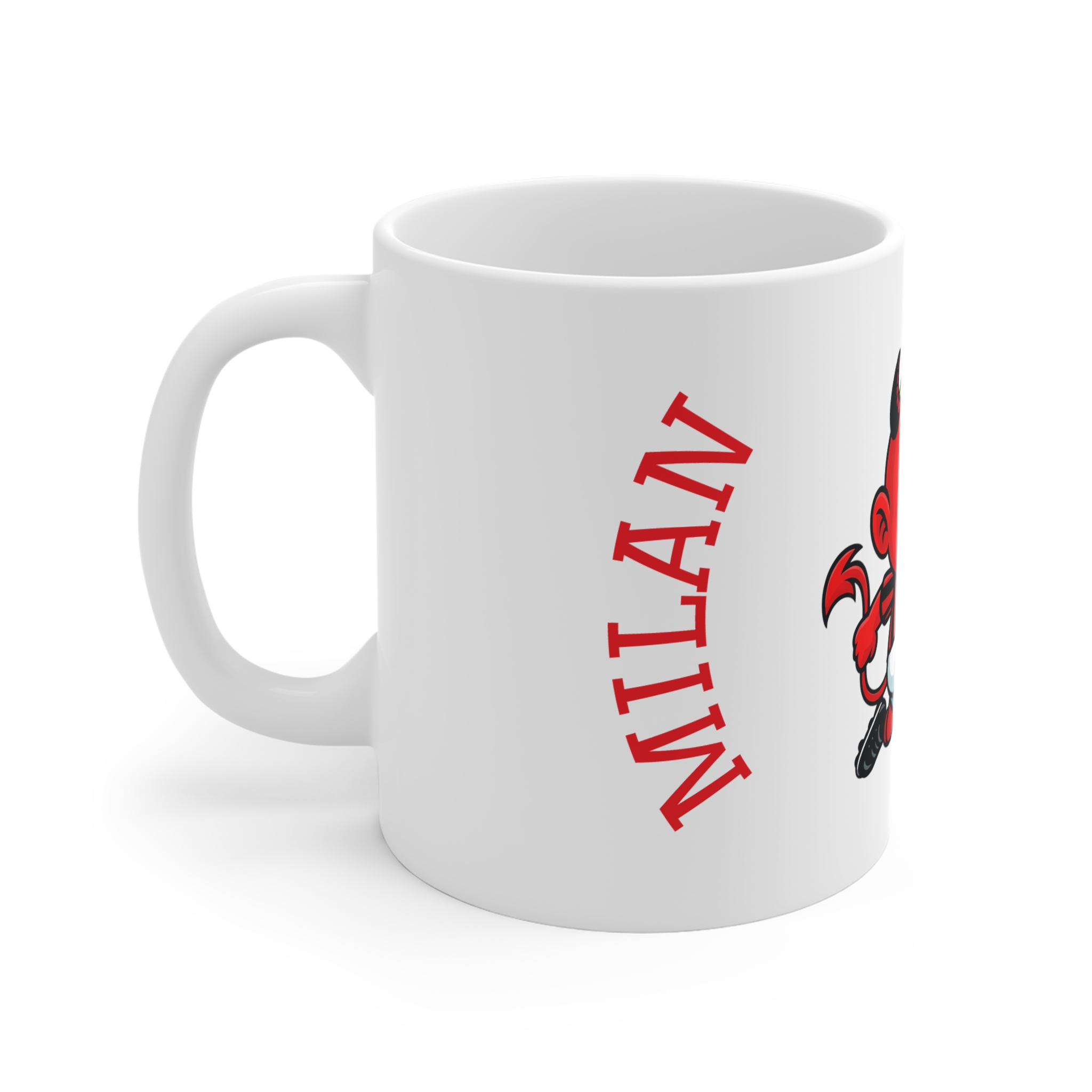 Cette tasse en céramique blanche transforme chaque gorgée en une explosion de plaisir milanais ! L'adorable mascotte apporte l'excitation du match à l'heure du petit déjeuner.