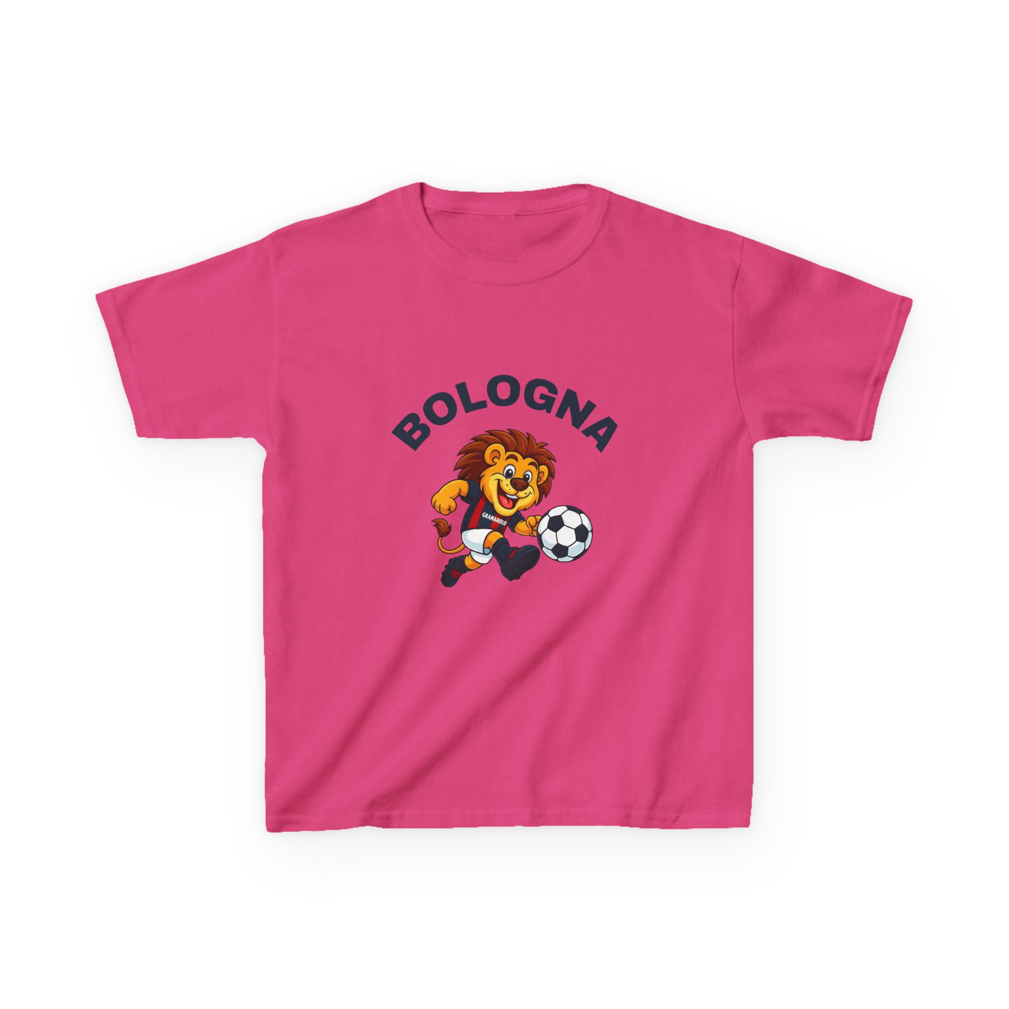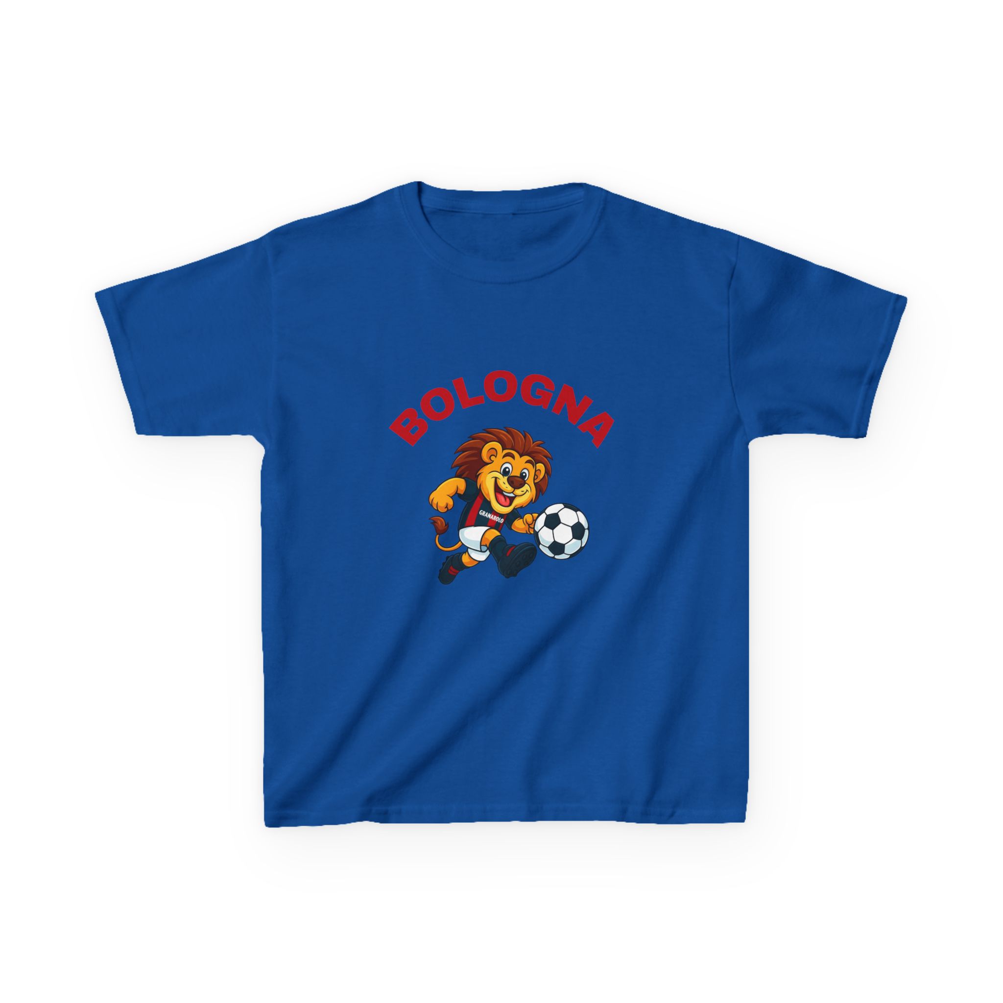 Questa maglietta fa rivivere l'energia dell'amata mascotte del Bologna: giocosa, audace e piena di orgoglio di squadra. Realizzata per il comfort e le avventure di tutti i giorni, è perfetta per le giornate di scuola, il divertimento al parco giochi o il tifo dagli spalti. Realizzato in cotone morbido e resistente, tiene il passo con ogni salto, calcio e gol. Un regalo ideale per i giovani tifosi che amano il calcio e i disegni divertenti, è prodotto eticamente e costruito per durare nel tempo, proprio come lo spirito della squadra che celebra.